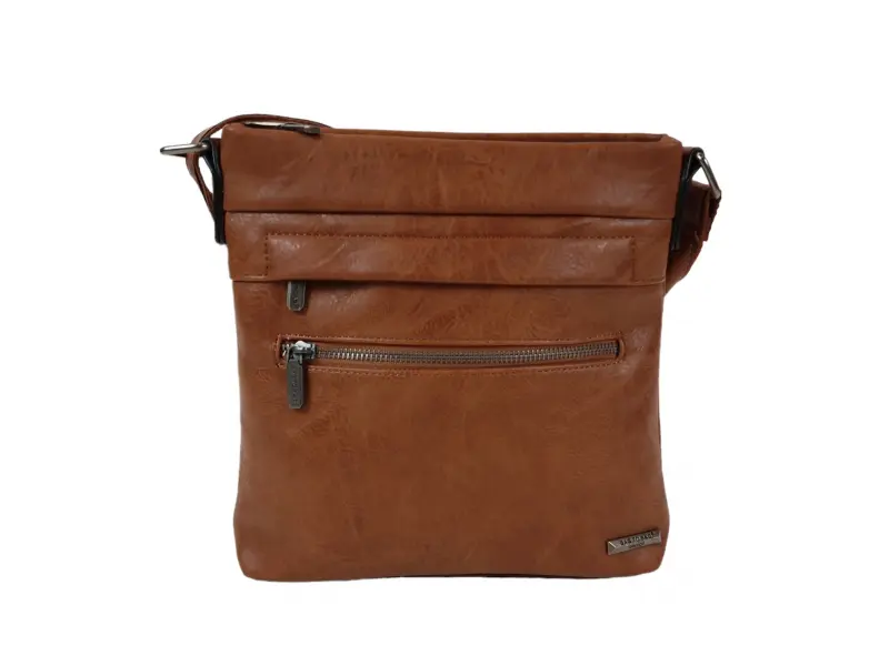 Geantă bărbătească de calitate - Geantă bărbătească maro, confecționată din piele ecologică. - Un compartiment principal cu fermoar. - Buzunar interior cu fermoar. - Buzunar interior fără fermoar. - Două buzunare frontale cu fermoar. - Buzunar spate cu fermoar. - Mâner lung reglabil.