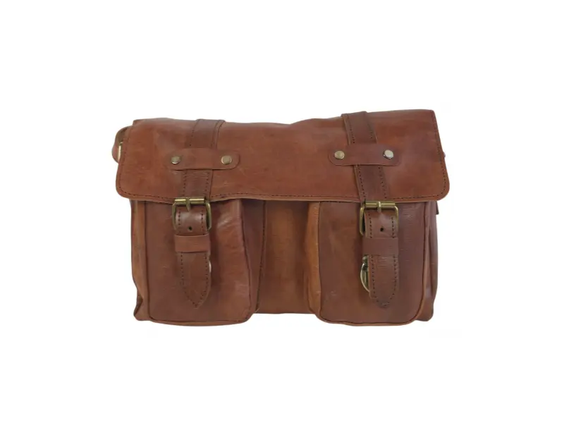 Geantă bărbătească robustă, confecționată din piele naturală, într-o culoare maro interesantă, cu închidere cu catarame și mecanism metalic. Geantă bărbătească de calitate, lucrată manual și importată din Maroc.