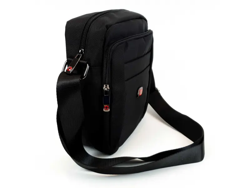Geantă bărbătească foarte robustă, confecționată din material de calitate și cu compartimente confortabile. Geantă de umăr bărbătească de culoare neagră, cu cruce în mijloc și mâner reglabil.
