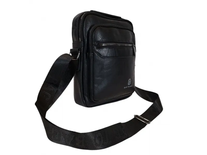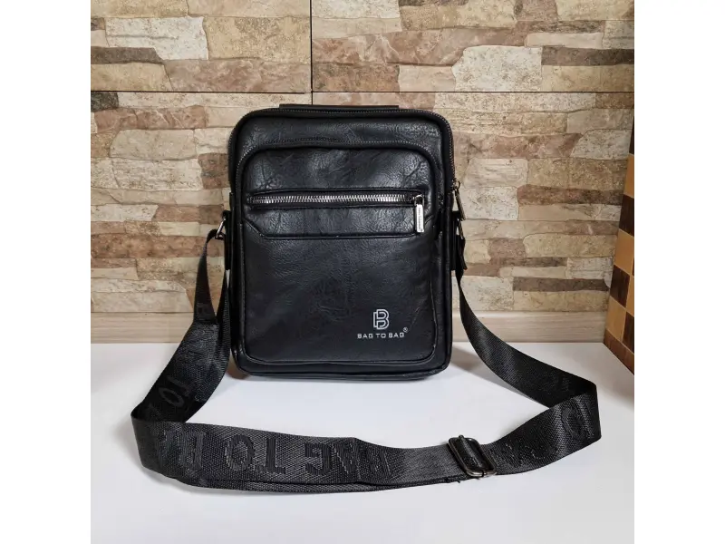 Geantă bărbătească din piele ecologică de calitate, de culoare neagră. Geantă confortabilă cu un compartiment principal cu fermoar, un buzunar interior mic cu fermoar, două buzunare frontale cu fermoar și un buzunar spate cu fermoar. Geantă bărbătească robustă, cu un mâner confortabil pentru purtare în mână și un mâner lung reglabil.