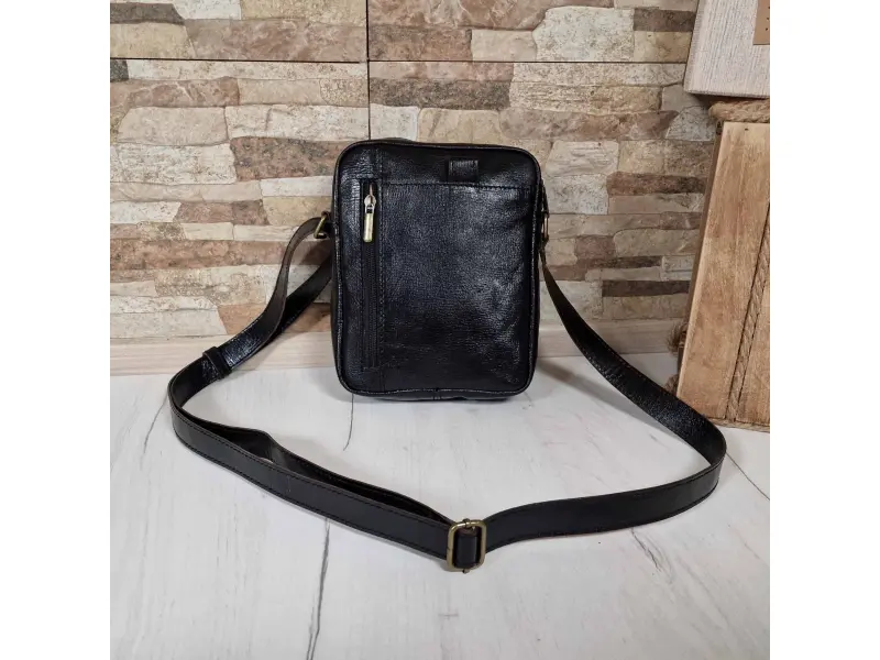 Geantă bărbătească robustă - Geantă bărbătească din piele naturală. - Un compartiment principal cu fermoar. - Buzunar interior fără fermoar. - Buzunar frontal cu fermoar. - Buzunar spate cu fermoar. - Mâner lung reglabil.