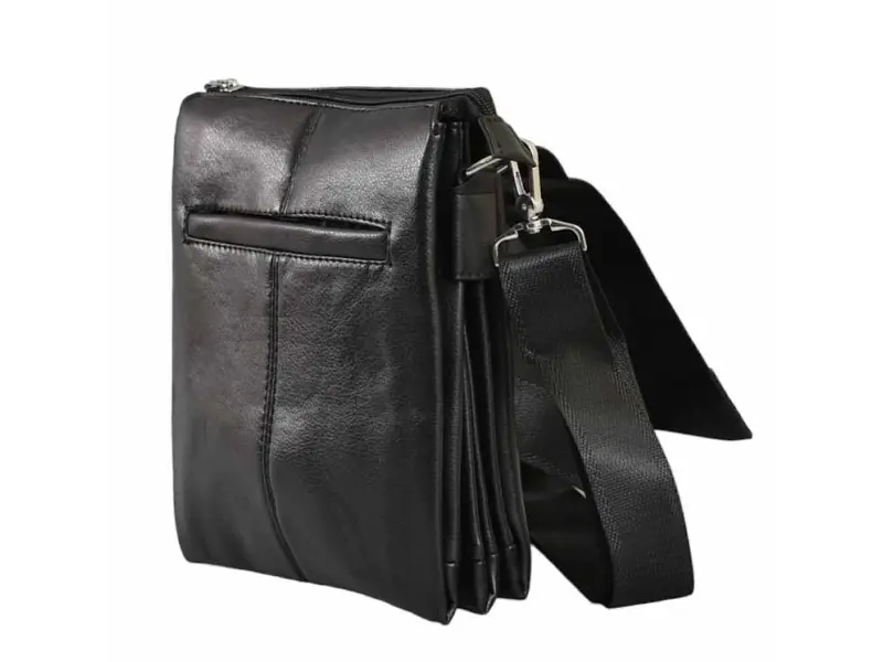 Geantă bărbătească cu trei compartimente - Geantă bărbătească din piele ecologică. - Trei compartimente principale cu fermoar comun. - Buzunar interior mic, fără fermoar. - Buzunar frontal sub clapă, fără fermoar. - Buzunar spate cu fermoar. - Capacul se închide cu un magnet. - Mâner lung reglabil.