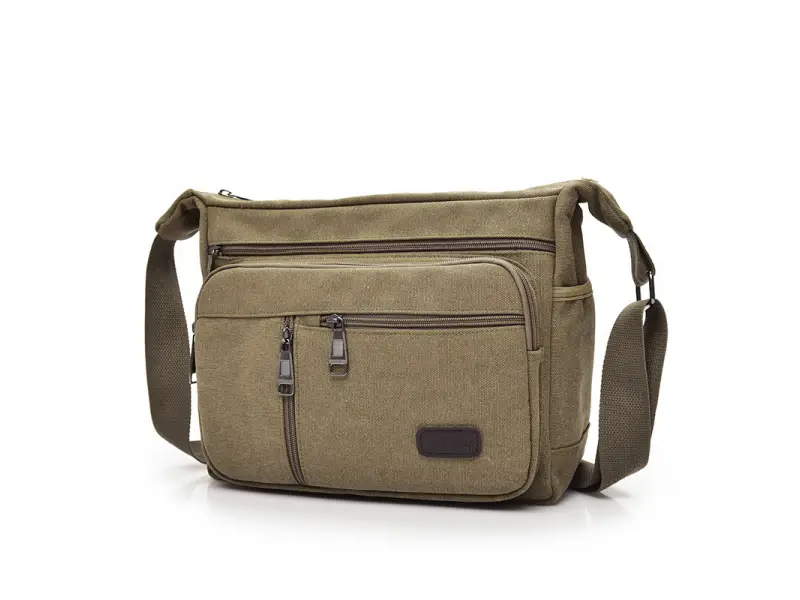 Geantă bărbătească confortabilă cu compartimente practice - Geantă bărbătească confecționată din material rezistent și impermeabil - prelată. - Un compartiment principal cu fermoar. - Buzunar interior mic cu fermoar. - Patru buzunare frontale cu fermoar. - Buzunar mare la spate cu fermoar. - Două buzunare laterale. - Mâner lung reglabil.