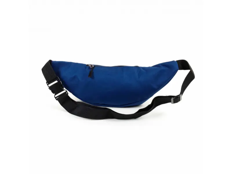 Geantă crossbody din material albastru. Geantă unisex cu un compartiment principal cu fermoar, buzunare frontale și spate cu fermoar și curea reglabilă din poliester.