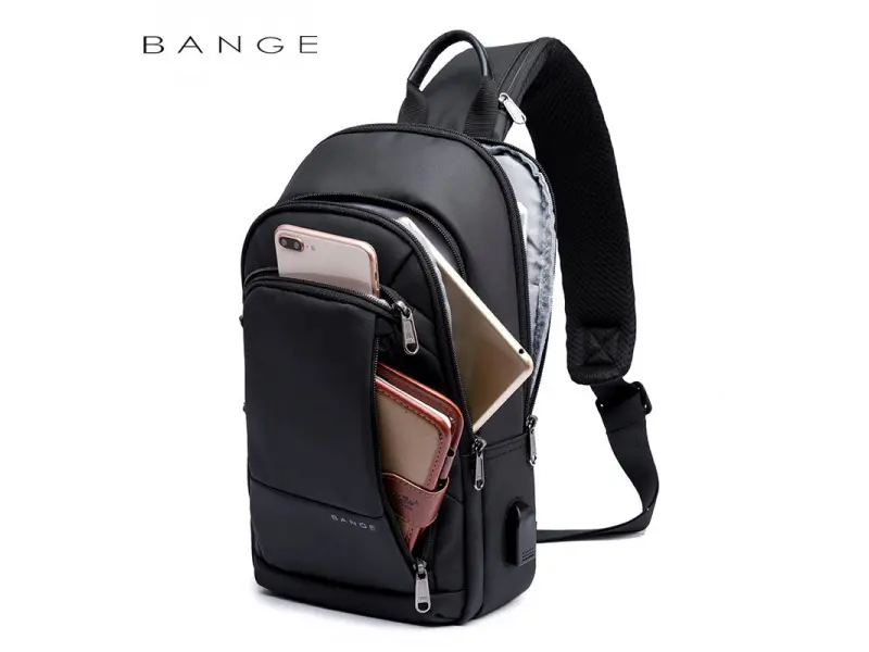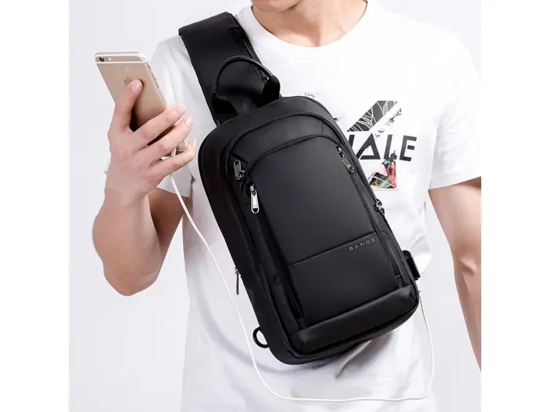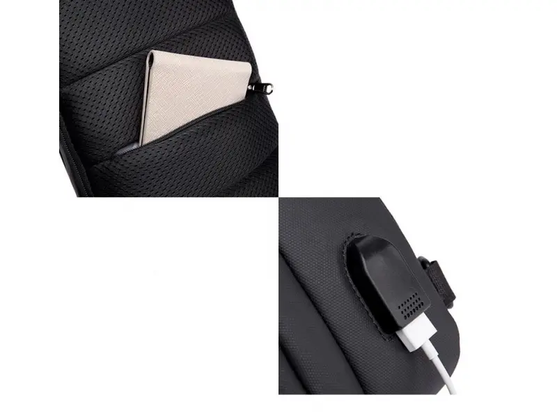 Geantă crossbody pentru bărbați - O geantă bărbătească ce poate fi purtată pe piept, pe umăr sau pe spate, ca un rucsac. - Un compartiment principal cu fermoar. - Trei buzunare interioare fără fermoar. - Buzunar interior cu fermoar. - Trei buzunare frontale cu fermoar. - Buzunar spate cu fermoar. - Mâner pentru transport în mână. - Curea de umăr reglabilă. - Posibilitatea de a schimba direcția de purtare. - Port USB.