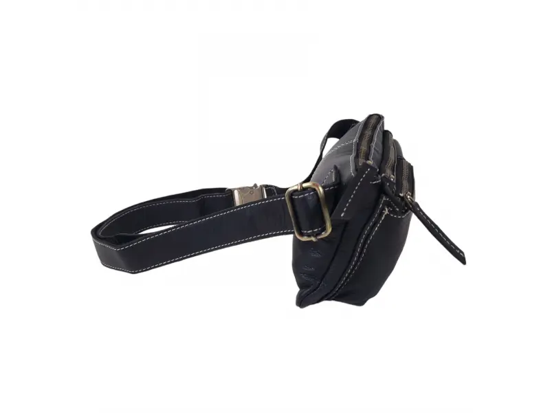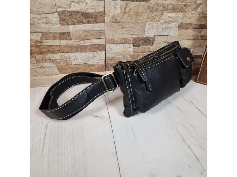 Geantă bărbătească confortabilă, confecționată din piele naturală - Un compartiment principal cu fermoar. - Buzunar interior mic cu fermoar. - Două buzunare frontale cu fermoar. - Buzunar frontal cu buton cu capsă. - Curea reglabilă.
