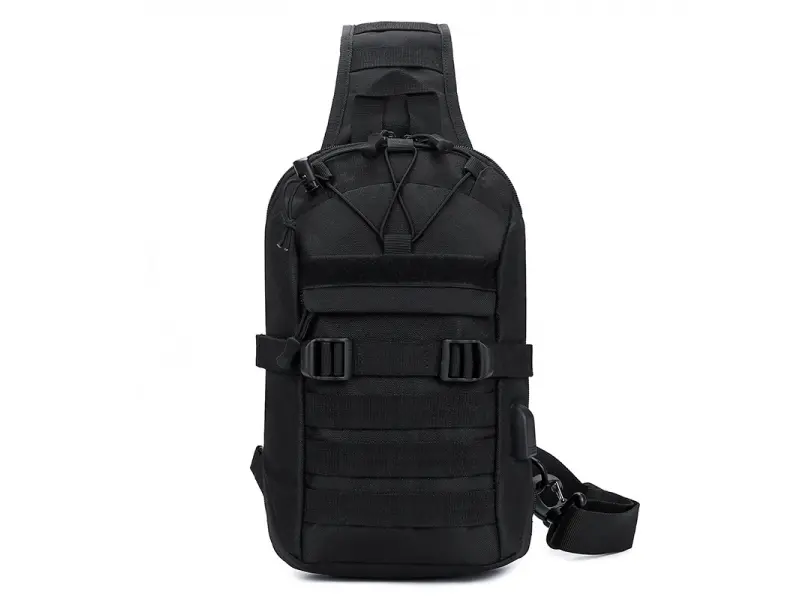 Geantă bărbătească robustă - O geantă bărbătească ce poate fi purtată pe piept, pe umăr sau pe spate, ca un rucsac. - Un compartiment principal cu fermoar. - Buzunar interior mic, fără fermoar. - Cablu și mufă USB. - Buzunar frontal cu fermoar. - Buzunarul din spate. - Curea de umăr reglabilă. - Posibilitatea de a schimba direcția de purtare.
