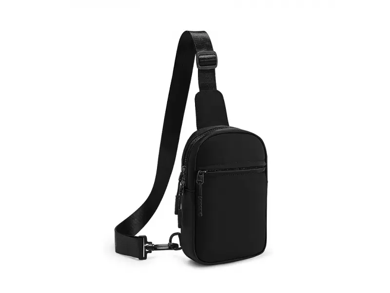 Geantă sport pentru purtat la piept, umăr sau spate, tip rucsac, fabricată din material de înaltă calitate. Geantă neagră cu compartimente practice și fermoare rezistente, cu o curea reglabilă confortabilă.