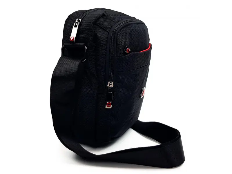 Geantă crossbody bărbătească - mărime medie. Geantă din material textil negru de calitate pentru bărbați. Geantă crossbody bărbătească de mărime medie. Geantă bărbătească foarte robustă de la ePazar.bg