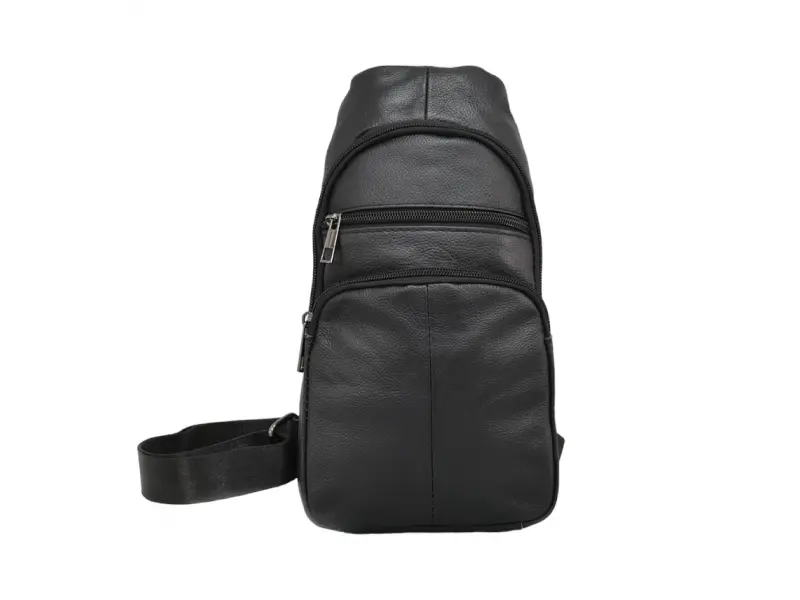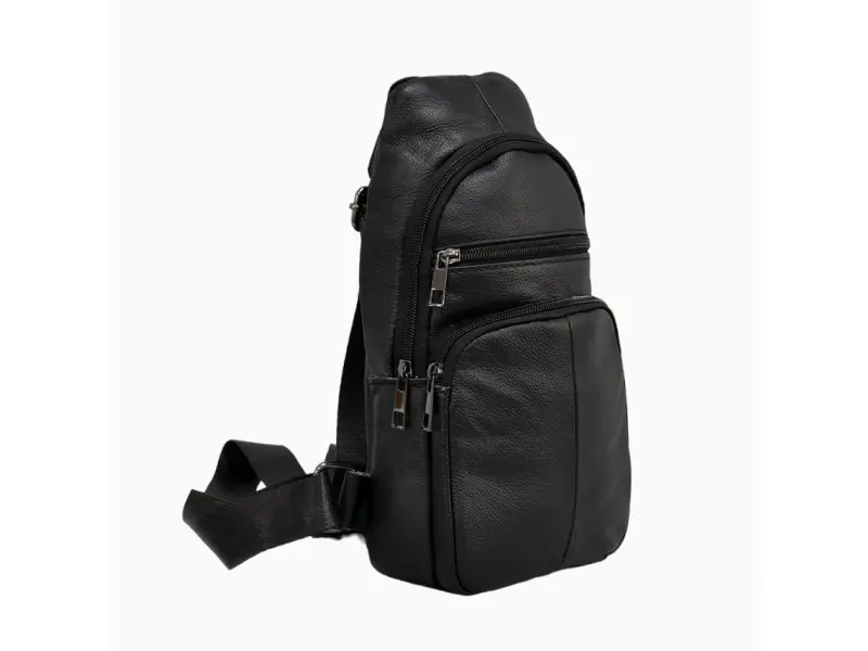 Geantă bărbătească din piele - Geantă crossbody bărbătească, confecționată din piele naturală. - Un compartiment principal cu fermoar. - Buzunar interior cu fermoar. - Două buzunare frontale cu fermoar. - Buzunar spate cu fermoar. - Curea de umăr reglabilă.