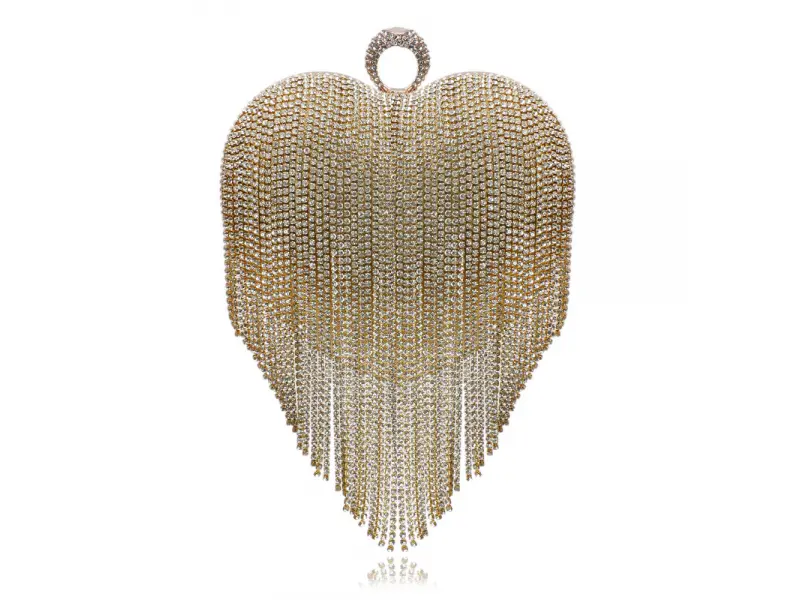 Geantă modernă în formă de inimă - Geantă de mână formală cu un singur compartiment. - Deschidere și închidere cu mecanism. - Margine aurie. - Mâner pentru transport în mână. - Mâner lung de tip lanț.