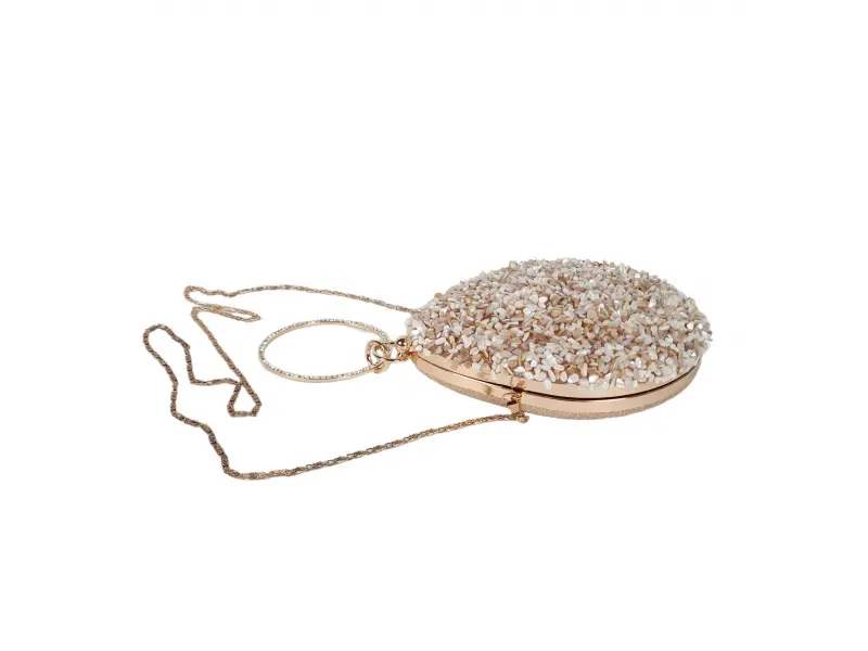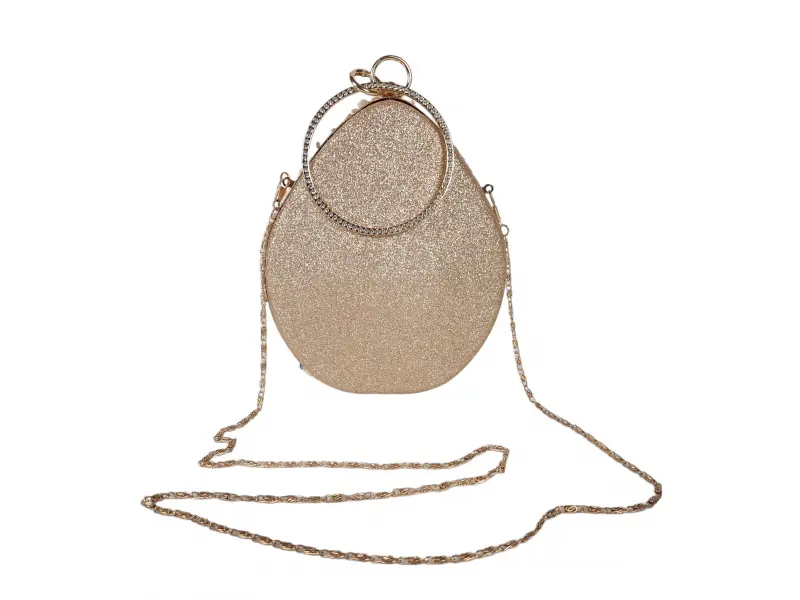 Geantă elegantă pentru absolvire - Geantă de mână formală cu un singur compartiment. - Deschidere și închidere cu mecanism. - Margine aurie. - Mâner pentru transport în mână. - Mâner lung de tip lanț.