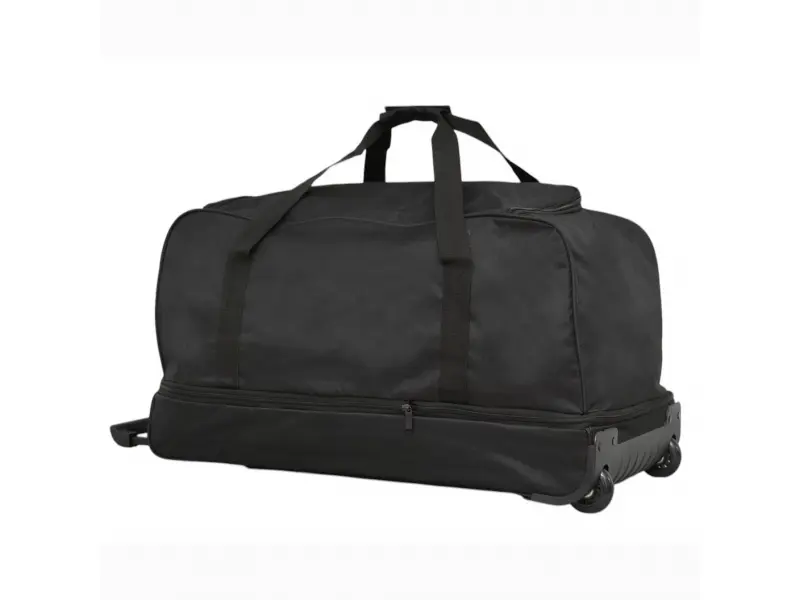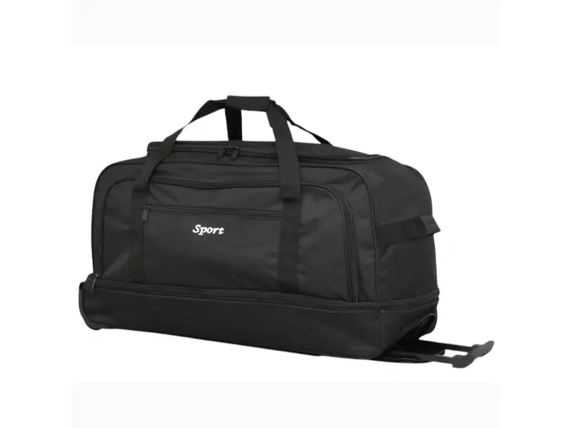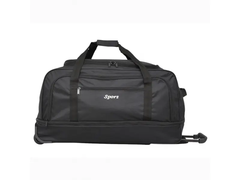 Geantă cu roți la preț promoțional - Geantă cu două roți și bară de remorcare - Un compartiment principal cu fermoar bidirecțional. - Două buzunare frontale cu fermoar. - Extensie cu fermoar. - Două șine în partea de jos pentru rezistență. - Mânere confortabile pentru transport în mână.