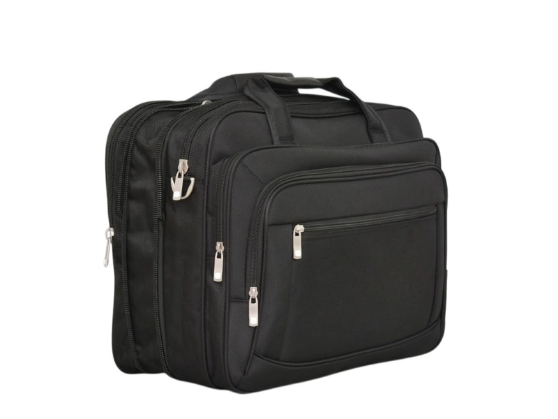 Geantă de bagaje de calitate - Geantă din material textil. - Două compartimente principale cu fermoar. - Spațiu pentru laptop. - Buzunar interior cu fermoar. - Cinci buzunare interne mici. - Trei buzunare frontale cu fermoar. - Buzunar spate cu fermoar. - Posibilitatea de extindere. - Posibilitatea de a agăța o valiză. - Mâner ergonomic. - Mâner lung reglabil.