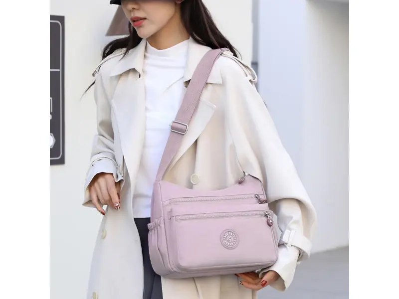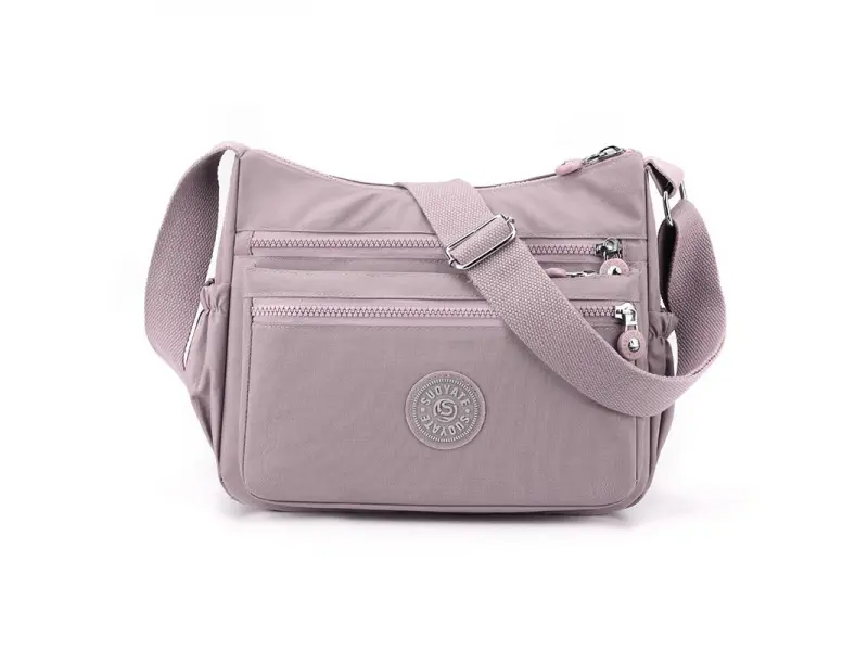 Geantă de damă în culoarea trandafirilor cenușii - Geantă de damă confecționată din material textil. - Un compartiment principal cu fermoar. - Trei buzunare frontale cu fermoar. - Buzunar spate cu fermoar. - Două buzunare laterale. - Buzunar interior mic cu fermoar. - Compartiment pentru telefon și documente. - Mâner lung, reglabil.