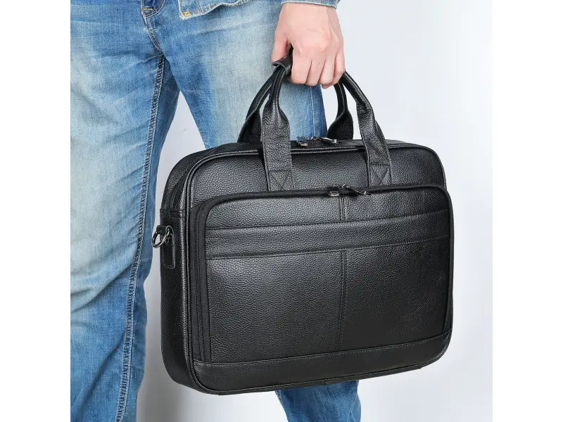 Geantă bărbătească de lux, confecționată din piele naturală - Un compartiment principal cu fermoar. - Compartiment pentru laptop cu închidere adezivă. - Buzunar interior cu fermoar. - Buzunar frontal cu fermoar. - Compartiment telefon. - Compartiment pentru pixuri și creioane. - Departamentul de documente. - Buzunar spate cu fermoar. - Mânere confortabile pentru transport. - Mâner lung reglabil.