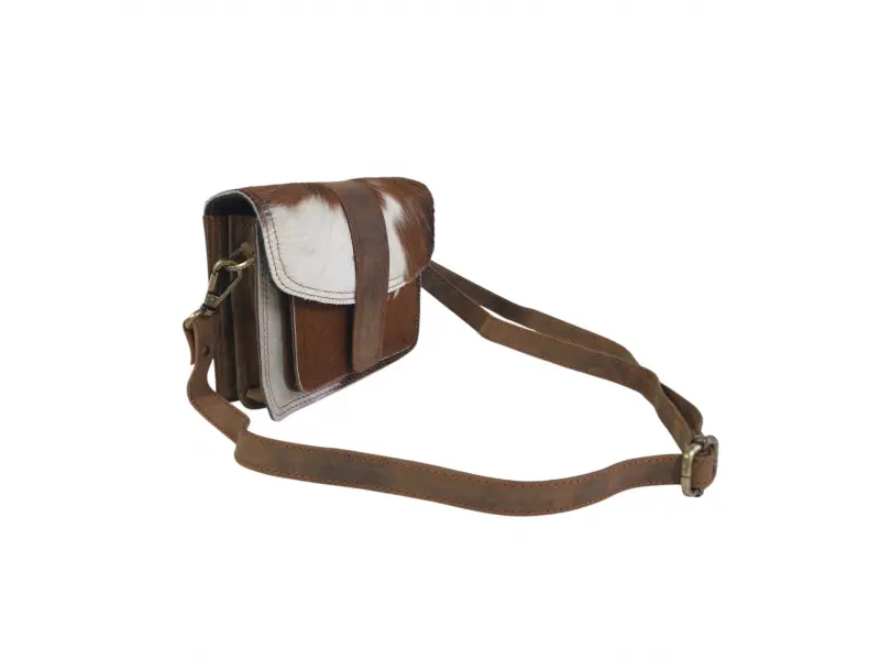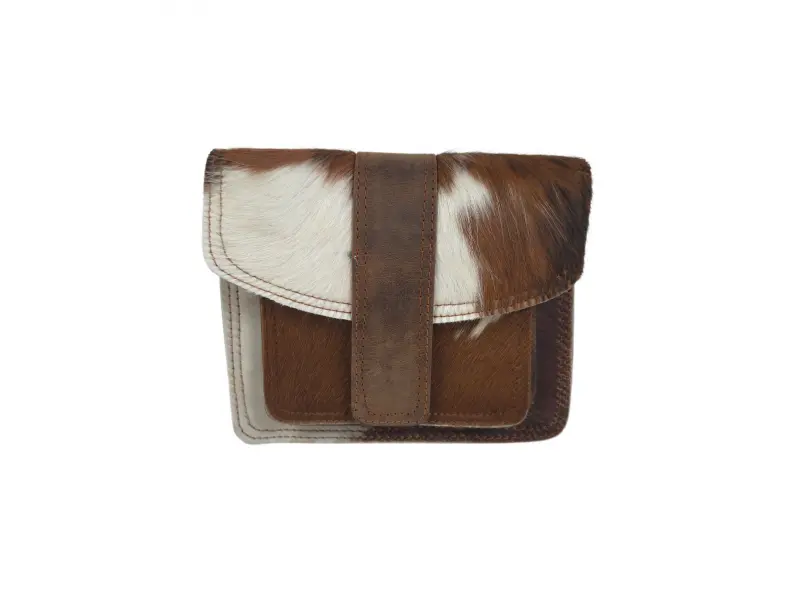 Model unic de geantă de mână - Geantă de mână confecționată din piele naturală combinată cu păr natural. - Închidere magnetică. - Un compartiment principal împărțit în două. - Buzunar frontal sub clapă. - Mâner lung reglabil.