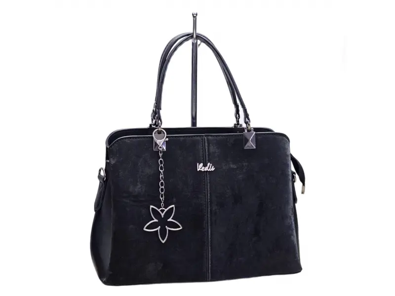 Geantă confortabilă din piele artificială de calitate. Geantă neagră cu un design interesant, cu compartimente practice. Geantă fabricată în Bulgaria cu mânere confortabile.