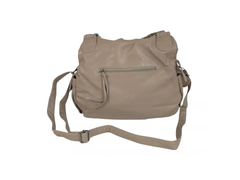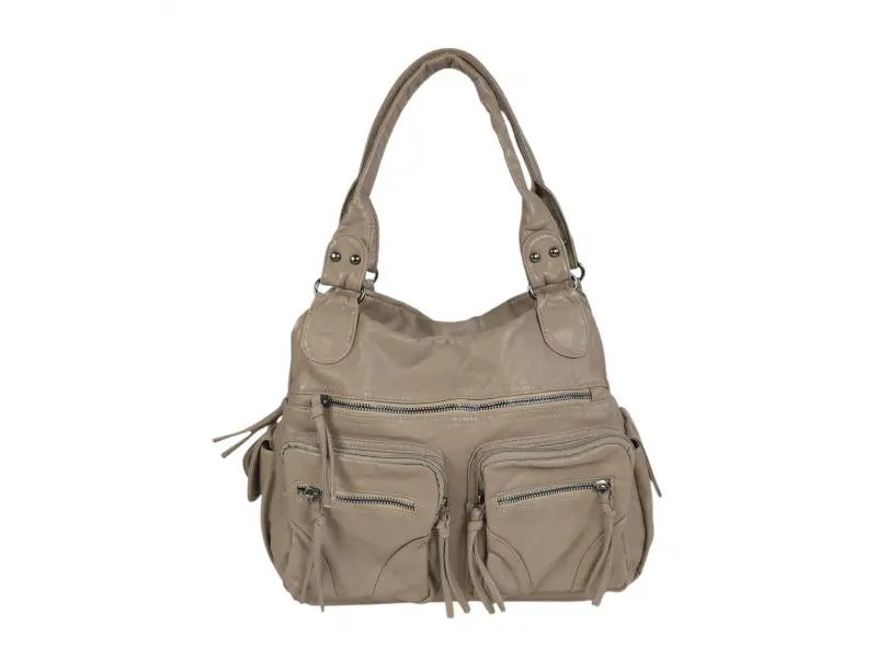Geantă de mână de calitate - Geantă de damă din piele fiartă. - Două compartimente principale cu fermoar. - Buzunar interior mic cu fermoar. - Compartimente pentru telefon și documente. - Cinci buzunare frontale cu fermoar. - Buzunar spate cu fermoar. - Două buzunare laterale. - Mânere confortabile pentru transport. - Mâner lung reglabil.