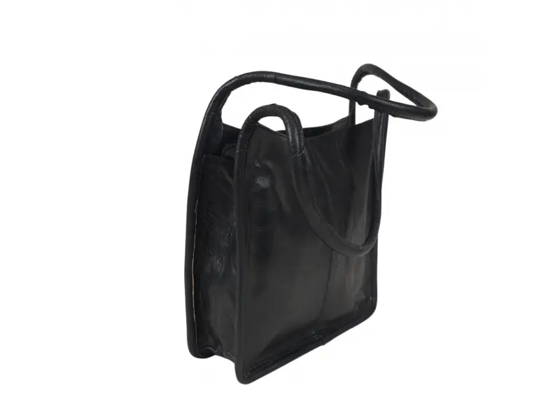 Geantă neagră din piele naturală, lucrată manual. Geantă marocană cu design unic. Geantă elegantă cu mânere confortabile. - ePazar.bg