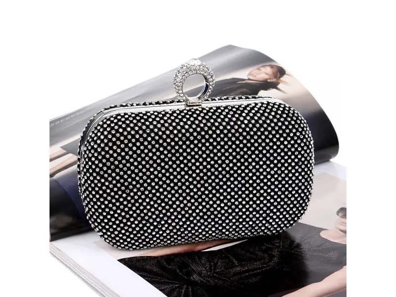 Geantă de seară unică - Geantă de mână formală cu un singur compartiment. - Deschidere și închidere cu mecanism. - Margine argintie. - Mâner lung de tip lanț.