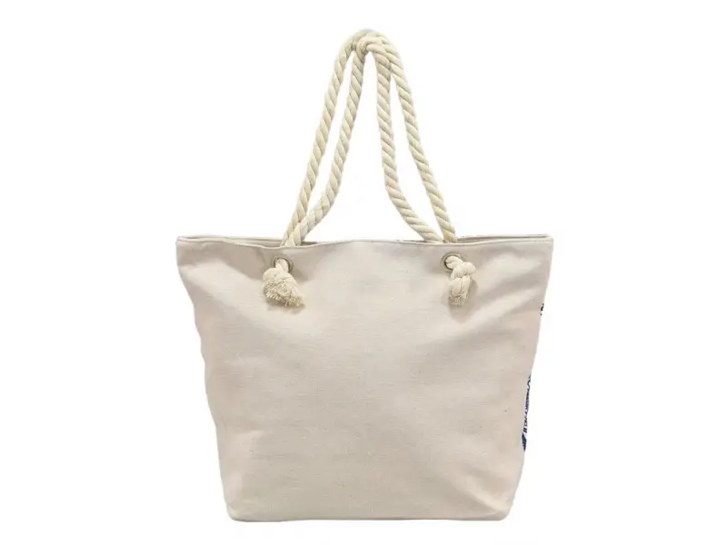 Geantă mică de plajă nouă Geantă mare de plajă din material textil. Un compartiment principal cu fermoar. Tip mâner - frânghie.