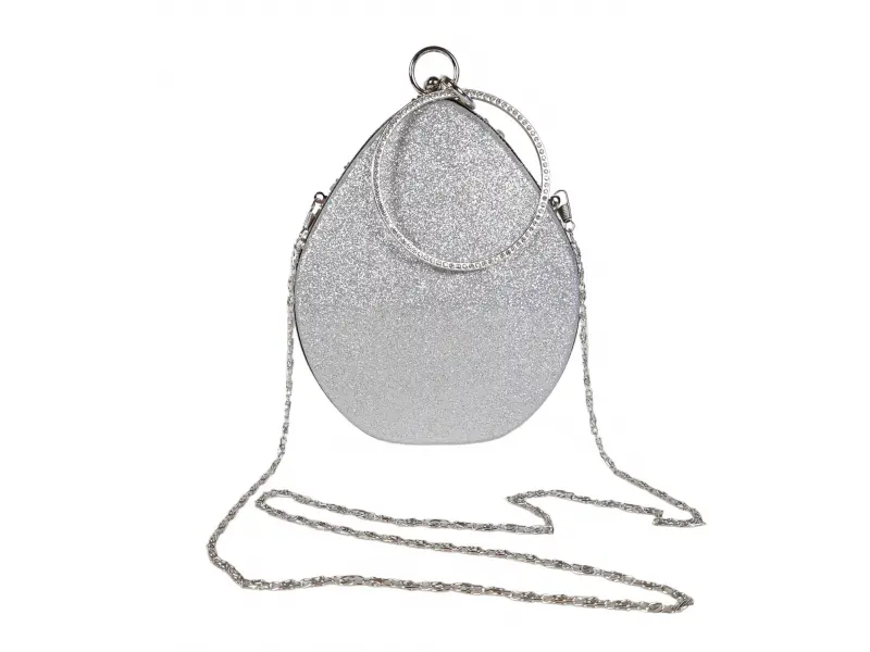 Geantă de absolvire cu un design interesant - Geantă de mână formală cu un singur compartiment. - Deschidere și închidere cu mecanism. - Margine argintie. - Mâner pentru transport în mână. - Mâner lung de tip lanț.