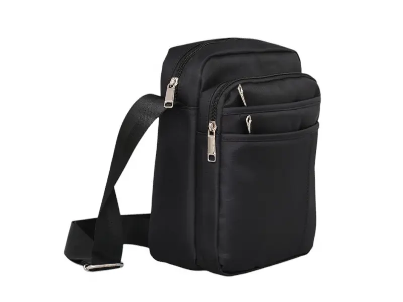 Geantă bărbătească cu multe buzunare din material textil - Geantă bărbătească confecționată din material de calitate. - Un compartiment principal cu fermoar. - Buzunar interior cu fermoar. - Trei buzunare frontale cu fermoar. - Buzunar spate cu fermoar. - Mâner lung reglabil.