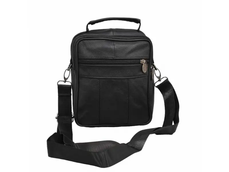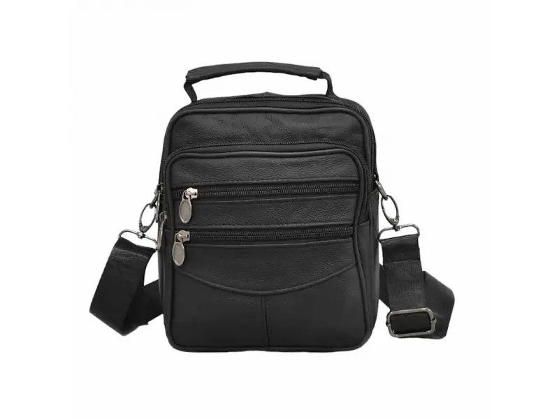 Geantă din piele pentru bărbați, de zi cu zi - Două compartimente principale cu fermoar. - Buzunar interior mic cu fermoar. - Trei buzunare frontale cu fermoar. - Buzunar spate cu fermoar. - Curea de umăr reglabilă. - Mâner pentru transport în mână.