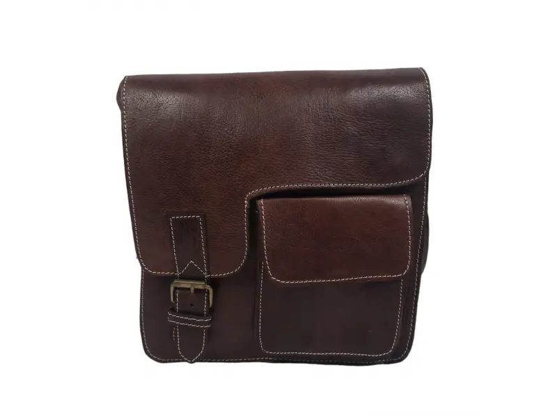 Geantă vintage din piele de calitate - Geantă bărbătească din piele naturală. - Un compartiment principal fără fermoar și cu închidere magnetică. - Buzunar frontal cu fermoar. - Buzunar frontal cu închidere magnetică. - Mâner lung reglabil.