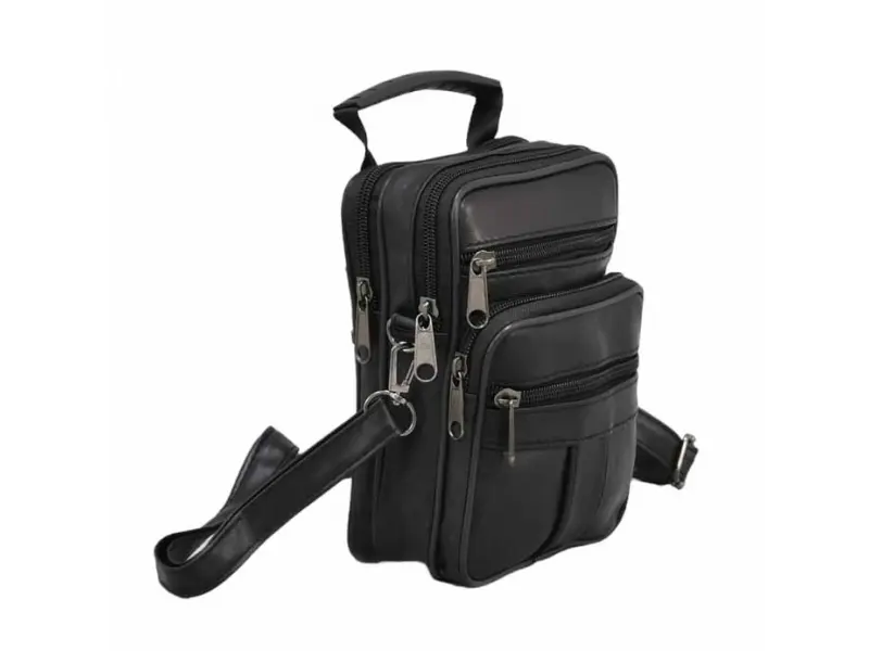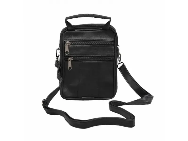Geantă compactă pentru bărbați, confecționată din piele naturală - Două compartimente principale cu fermoar. - Trei buzunare frontale cu fermoar. - Două buzunare la spate cu fermoar. - Buzunar interior cu fermoar. - Curea de umăr reglabilă. - Mâner pentru transport în mână.