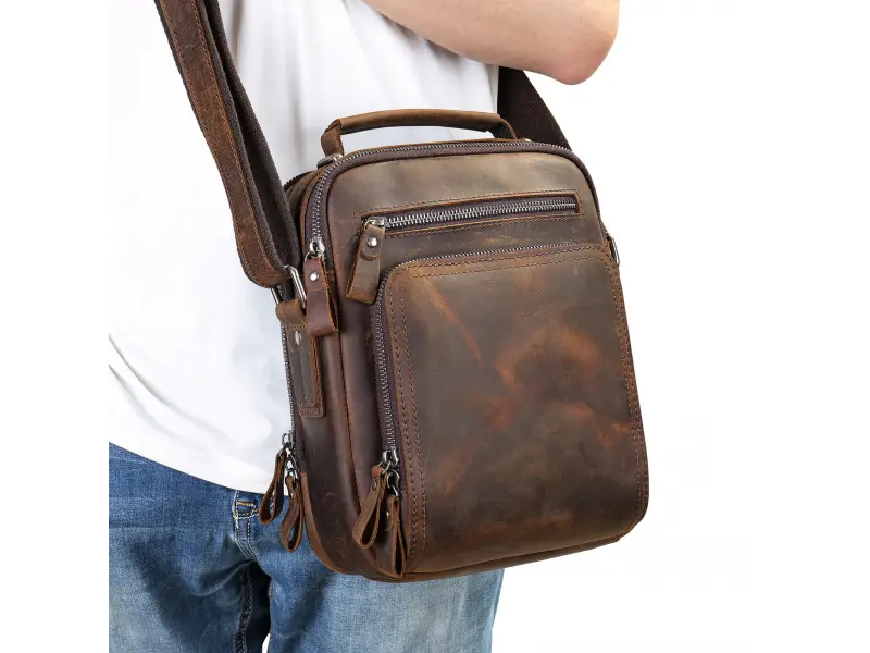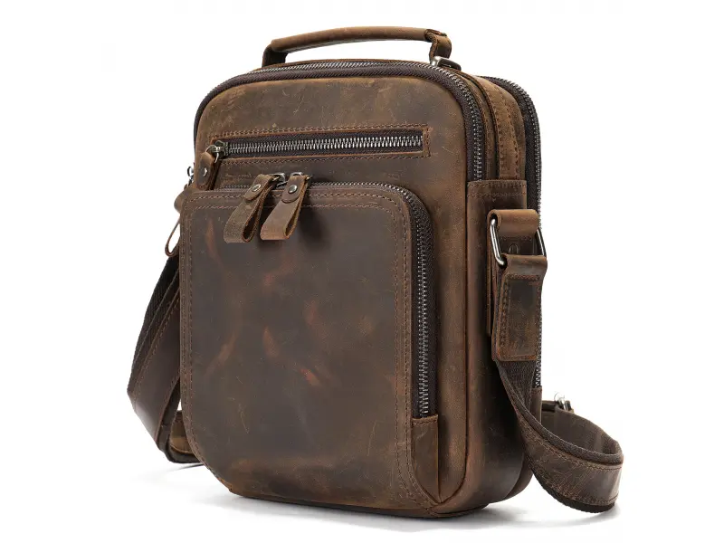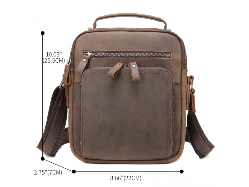 Geantă bărbătească din piele naturală de calitate - Două compartimente principale cu fermoar. - Buzunar interior mic cu fermoar. - Buzunar interior fără fermoar. - Două buzunare frontale cu fermoar. - Buzunar spate cu fermoar. - Curea de umăr reglabilă. - Mâner pentru transport în mână.