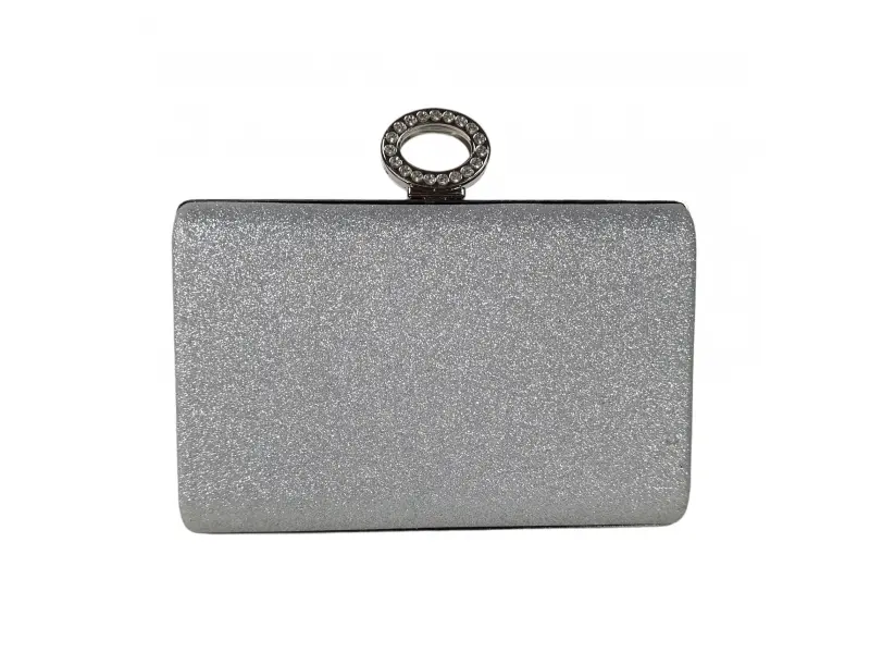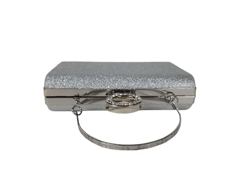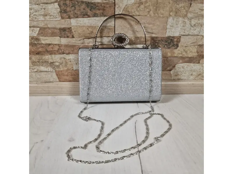 Geantă de seară cu sclipici - Geantă de mână formală cu un singur compartiment. - Deschidere și închidere cu mecanism. - Margine argintie. - Mâner pentru transport în mână. - Mâner lung de tip lanț.