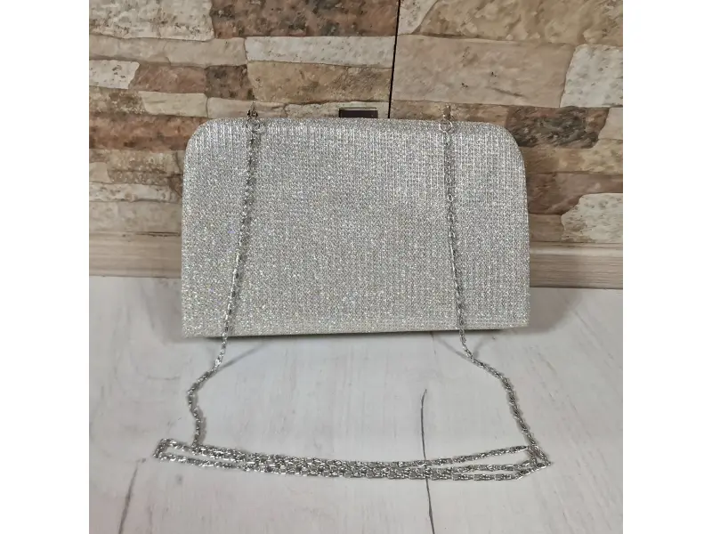Geantă elegantă și elegantă - Geantă de mână formală cu un singur compartiment. - Deschidere și închidere cu mecanism. - Mâner lung tip lanț, de culoare argintie.