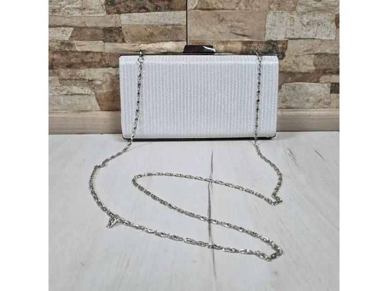 Geantă elegantă - Geantă de mână formală cu un singur compartiment. - Deschidere și închidere cu mecanism. - Margine argintie. - Mâner lung de tip lanț.