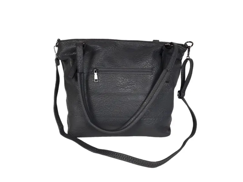 Geantă gri de zi cu zi -Geantă de damă confecționată din piele ecologică. - Un compartiment principal cu fermoar. - Compartiment interior cu fermoar. - Loc pentru telefon și chei. -Buzunar interior cu fermoar. -Buzunar spate cu fermoar. - Bretele confortabile. - Mâner lung, reglabil suplimentar.