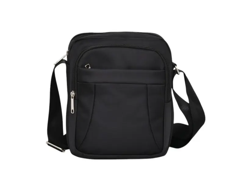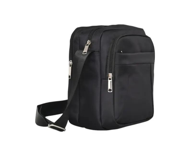 Geantă textilă pentru bărbați - Geantă bărbătească confecționată din material de calitate. - Două compartimente principale cu fermoar. - Buzunar interior cu fermoar. - Două buzunare frontale cu fermoar. - Buzunar spate cu fermoar. - Mâner lung reglabil.