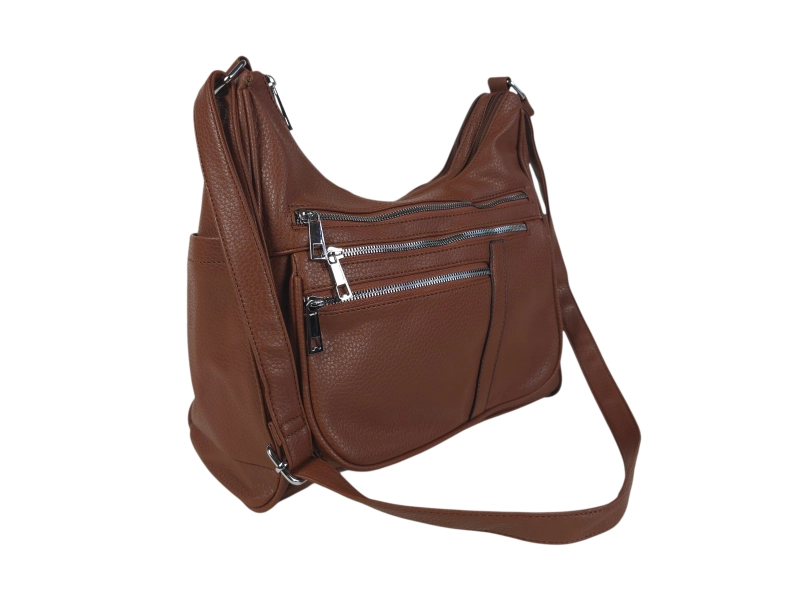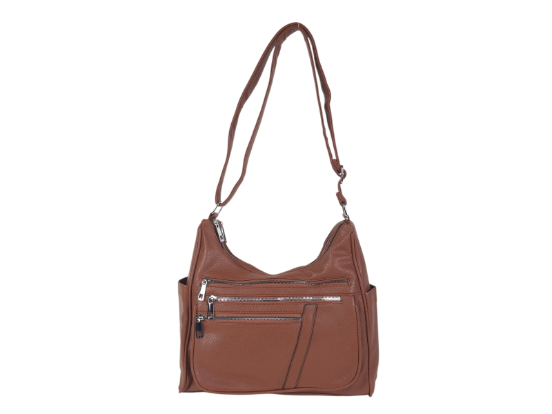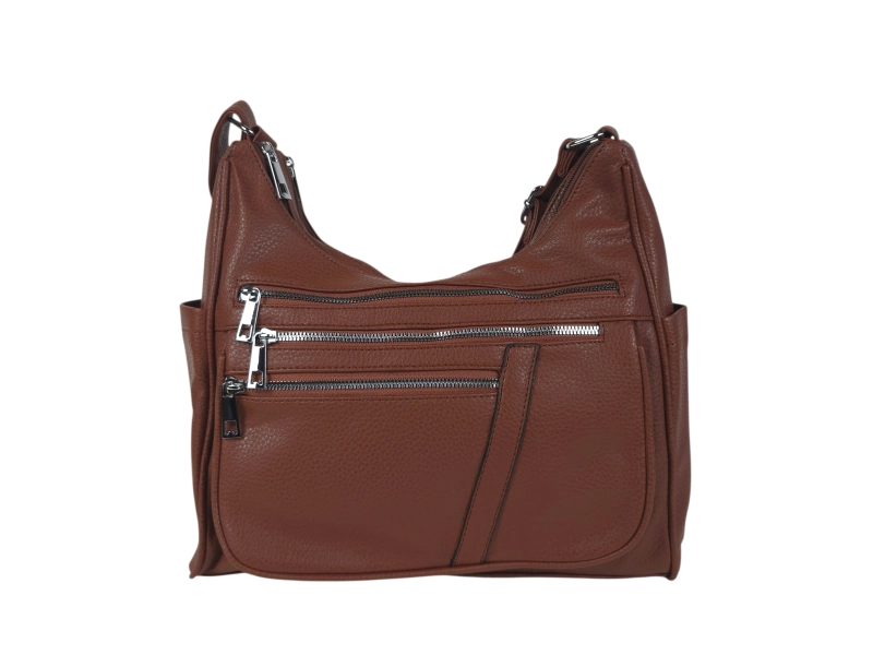 Geantă de mână cu curea de umăr confortabilă - Geantă de mână din piele ecologică. - Două compartimente principale cu fermoar - Buzunar interior mic cu fermoar. - Trei buzunare frontale cu fermoar. - Buzunar spate cu fermoar. - Două buzunare laterale. - Mâner lung reglabil.