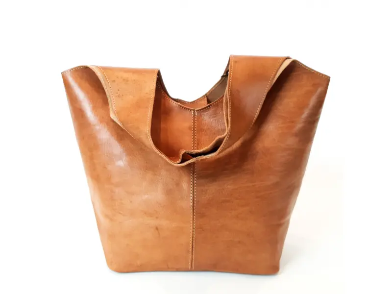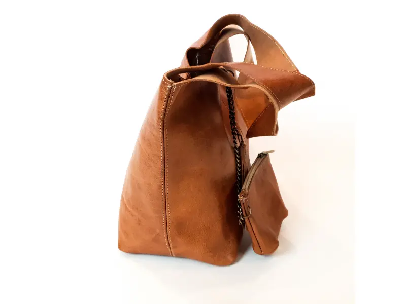 Geantă mare de damă din piele naturală, finisată manual. Geantă marocană - o geantă cu închidere magnetică, cu mânere rezistente și o poșetă suplimentară cu fermoar.