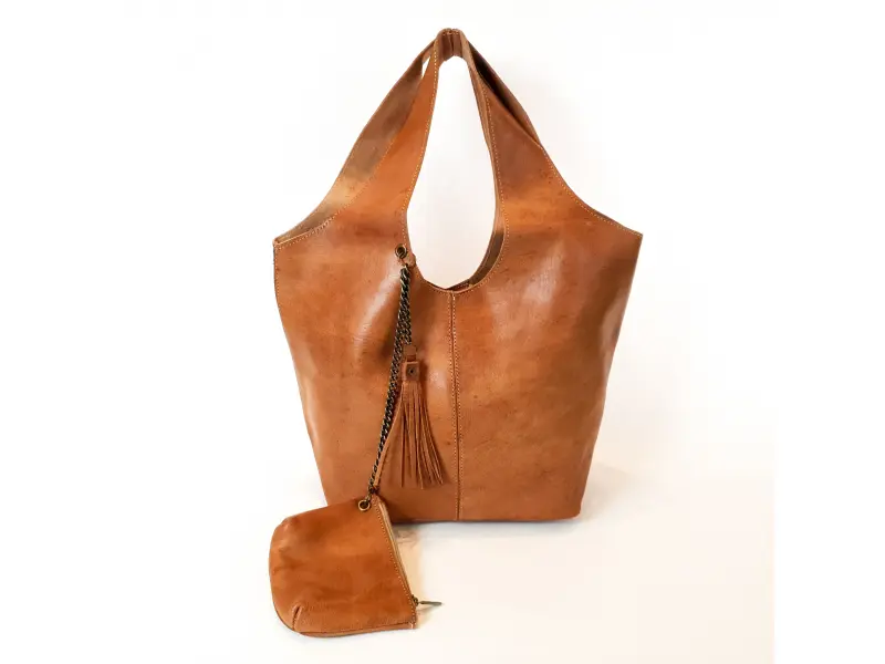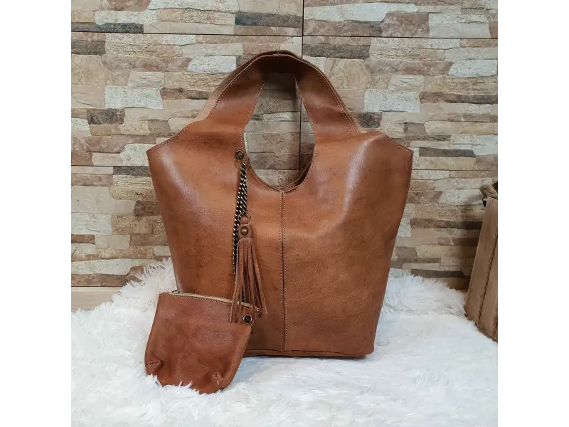 Geantă maro deschis, maro deschis. Geantă mare de damă, maro deschis, din piele naturală, finisată manual. Geantă marocană cu poșetă suplimentară și închidere magnetică.