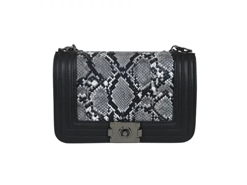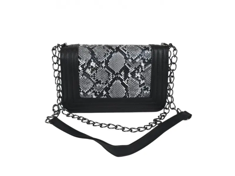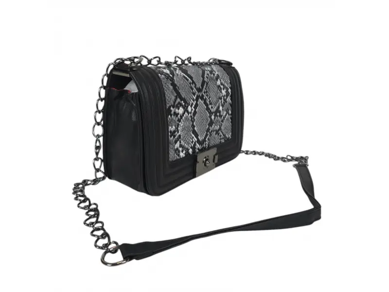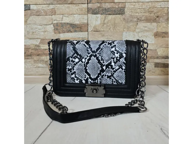 Geantă elegantă - Geantă mică din piele ecologică. - Un compartiment principal cu mecanism de închidere. - Buzunar interior mic cu fermoar. - Mâner lung tip lanț combinat cu piele ecologică.