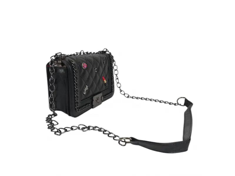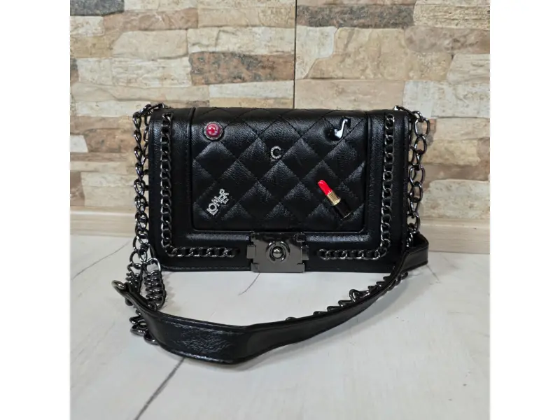 Geantă de mână model nou - Geantă mică din piele ecologică. - Un compartiment principal cu mecanism de închidere. - Buzunar interior mic cu fermoar. - Mâner lung tip lanț combinat cu piele ecologică.