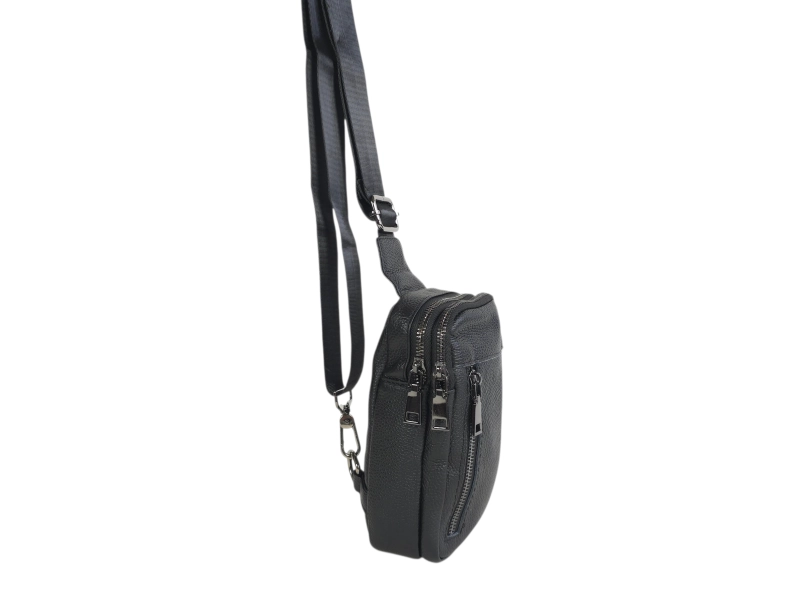 Geantă bărbătească din piele naturală de culoare neagră. O geantă crossbody care poate fi purtată și pe spate ca un rucsac. Geantă bărbătească din piele cu compartimente practice și fermoare rezistente, cu o curea de umăr confortabilă.