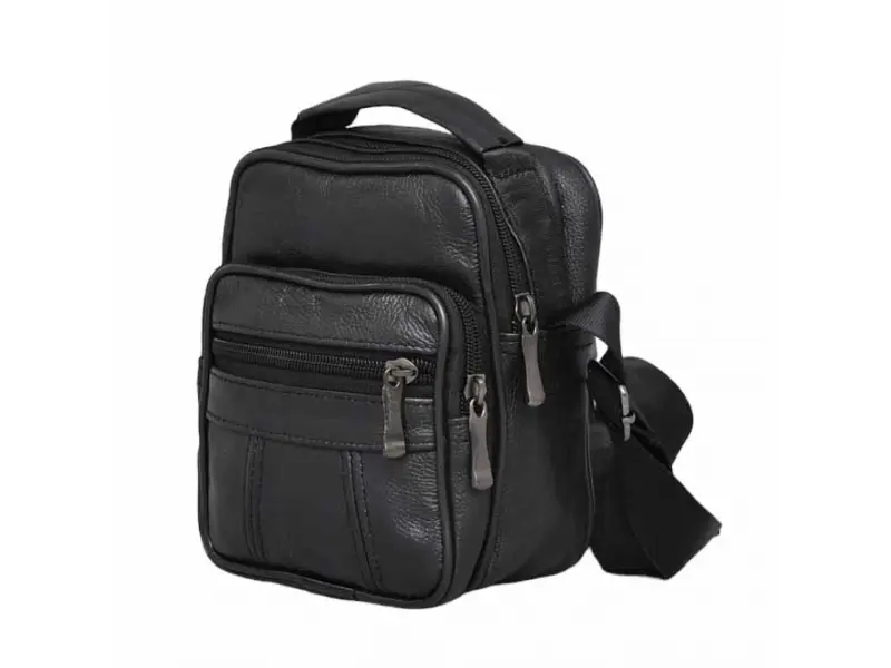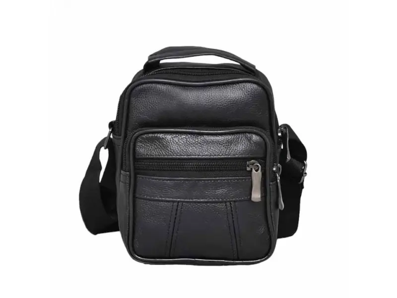 Geantă mică bărbătească din piele naturală - Un compartiment principal cu fermoar. - Buzunar interior mic cu fermoar. - Două buzunare frontale cu fermoar. - Buzunar spate cu fermoar. - Curea de umăr reglabilă. - Mâner pentru transport în mână.