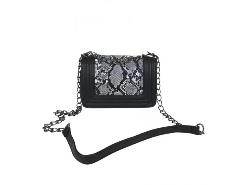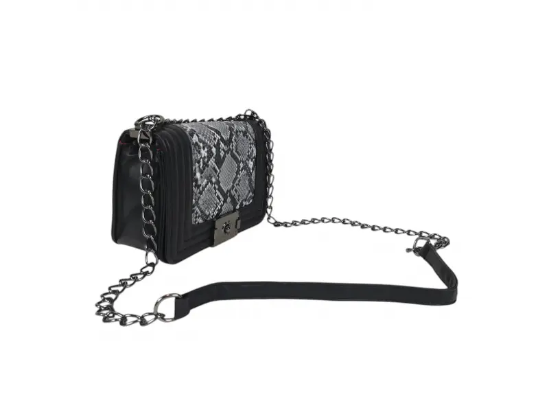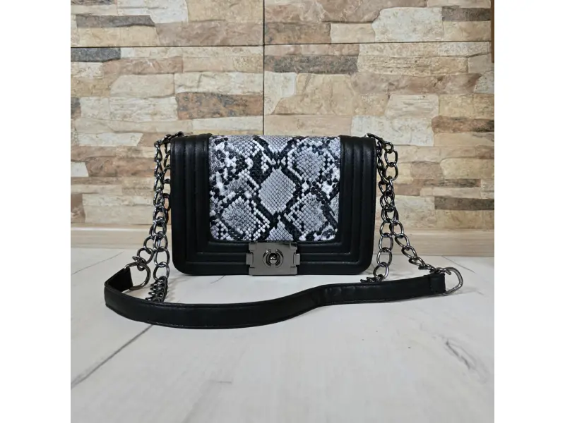 Geantă confortabilă - Geantă mică din piele ecologică. - Un compartiment principal cu mecanism de închidere. - Buzunar interior mic cu fermoar. - Mâner lung tip lanț combinat cu piele ecologică.