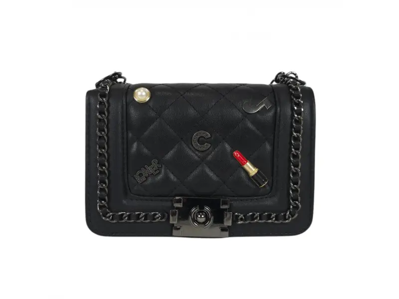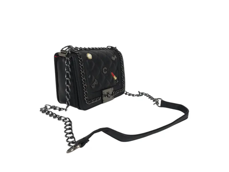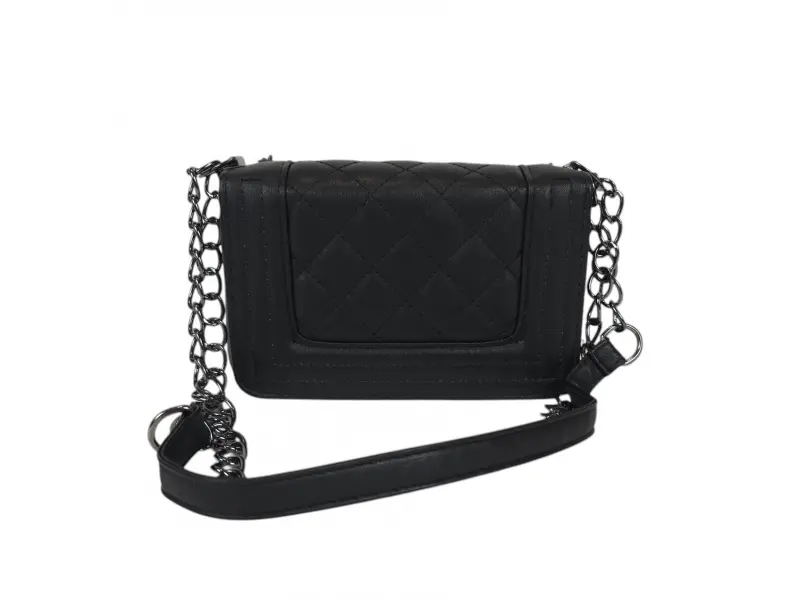 Model interesant de geantă de mână - Geantă mică din piele ecologică. - Un compartiment principal cu mecanism de închidere. - Buzunar interior mic cu fermoar. - Mâner lung tip lanț combinat cu piele ecologică.
