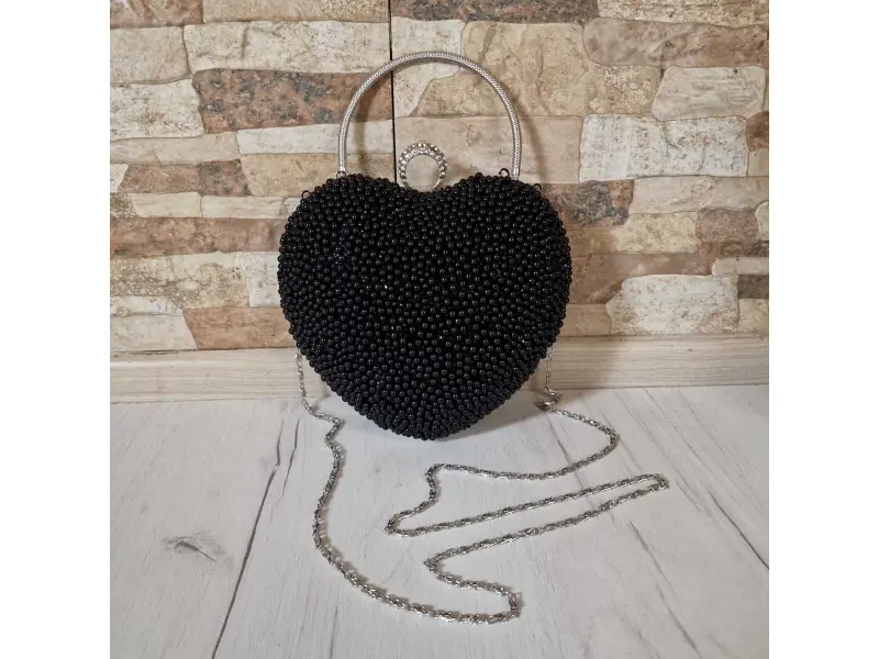 Geantă neagră formală cu perle - inimă | Genți de damă (ePazar.bg)