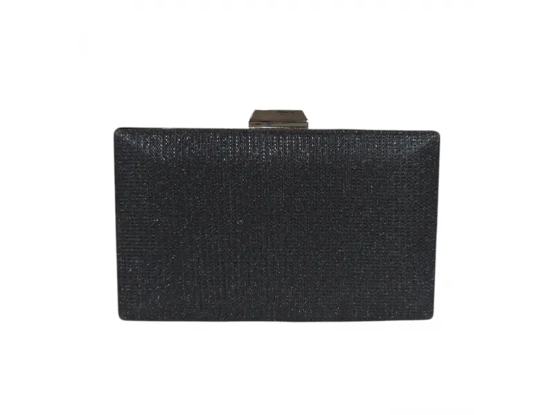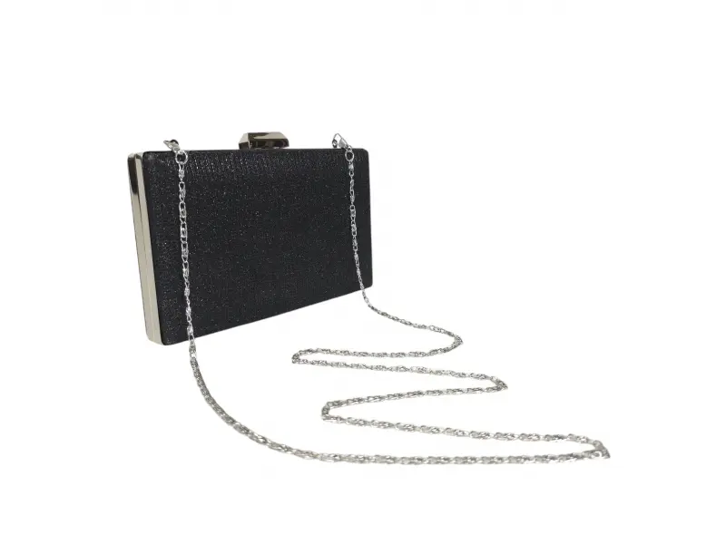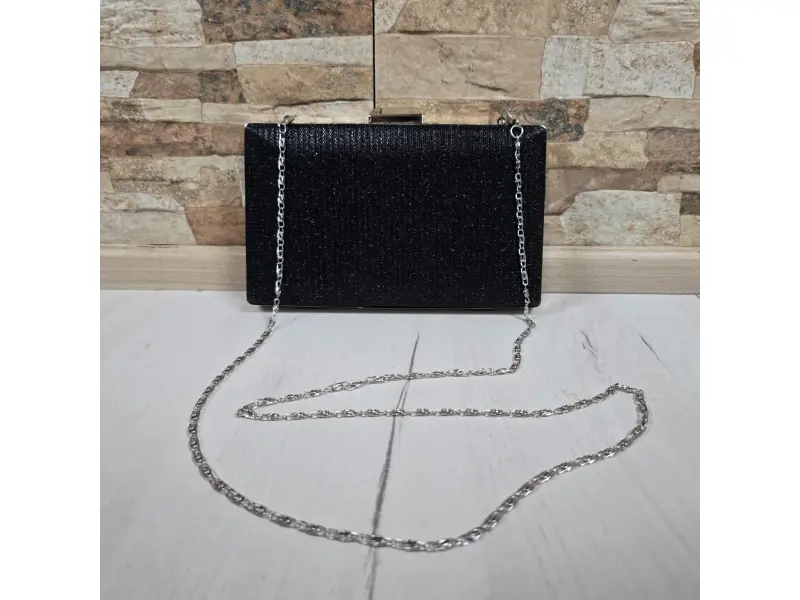 Geantă elegantă neagră - Geantă de mână formală cu un singur compartiment. - Deschidere și închidere cu mecanism. - Margini metalice. - Mâner lung de tip lanț.