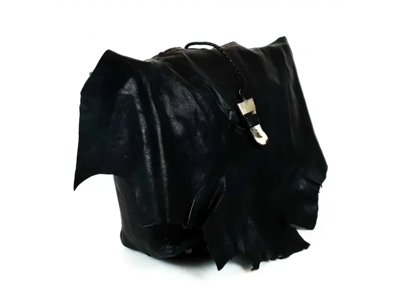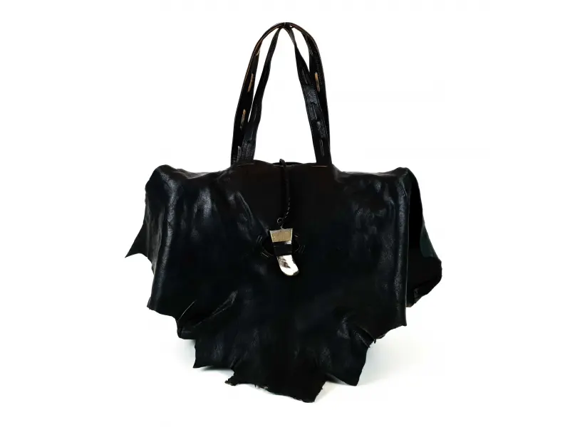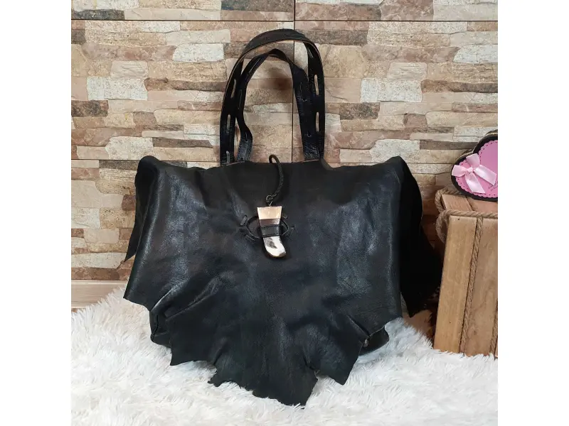 Geantă neagră - frunză. Geantă interesantă, importată din Maroc, din piele naturală. Geantă neagră cu mâner lung reglabil.