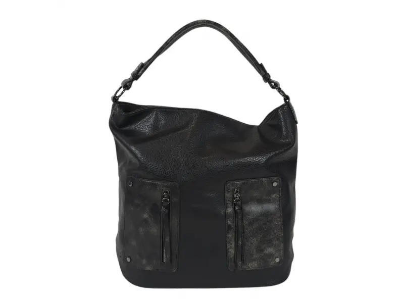 Geantă mare - Geantă de mână din piele ecologică. - Un compartiment cu închidere cu fermoar. - Două buzunare interioare mici cu fermoar. - Buzunar interior mic, fără fermoar. - Compartimente pentru telefon și documente. - Două buzunare frontale cu fermoar. - Buzunar spate cu fermoar. - Mâner convenabil pentru transport. - Mâner lung reglabil.